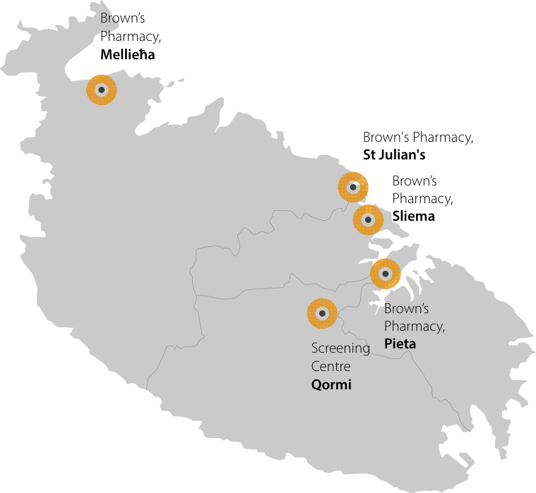 All COVID-19 tests are performed in a specifically designated screening centre and NOT within the Brown's Pharmacies or Clinics. All swabbing personnel are wearing full PPE at all times. Appointments are booked respecting social distancing guidelines. The Public Health Authority is duly informed about every positive case registered.